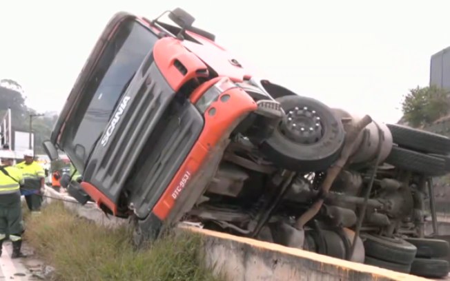 Ao menos três faixas precisaram ser interditadas, o que causou lentidão e congestionamento na chegada a São Paulo. O estado do motorista é estável.