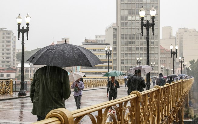 Segundo o Centro de Gerenciamento de Emergências (CGE), a passagem de uma frente fria é o motivo da virada do tempo em São Paulo. Este sábado terá muitas nuvens e pancadas de chuva, que se intensificam ao longo do dia. As temperaturas variam entre 17°C e 25°C na maior parte do estado.